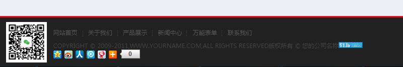 “COPYRIGHT 20XX-20XX,WWW.YOURNAME.COM,ALL RIGHTS RESERVED版权所有 您的公司名称”,同时也可以在这里加上你的备案号等信息。