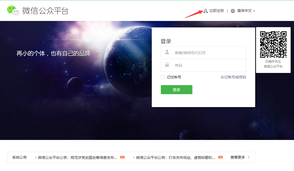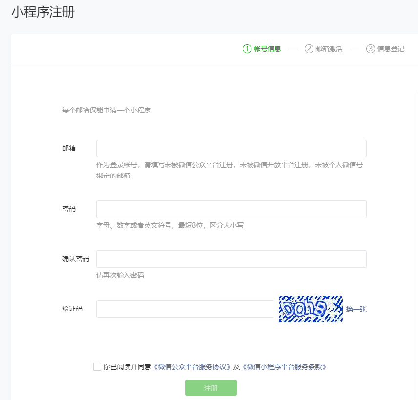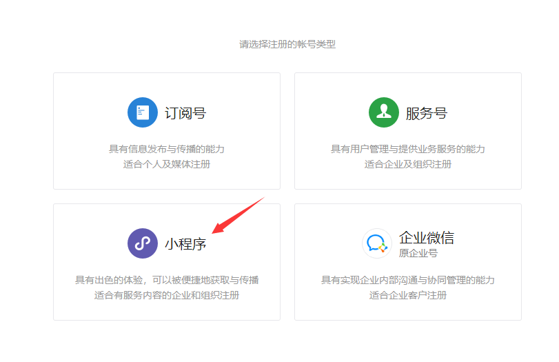 1.注册小程序帐号 访问 https://mp.weixin.qq.com/ 进行注册(如果已有小程序帐号,请直接登录)