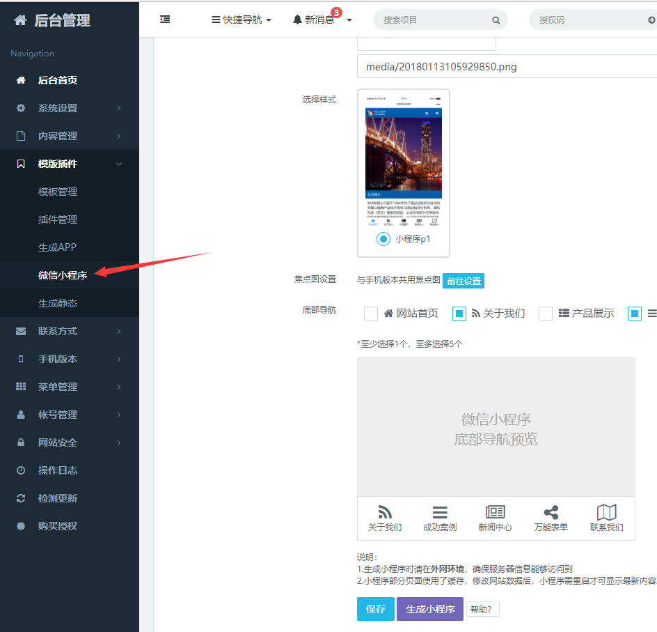 注意:请在外网环境(互联网)生成小程序,否则会导致小程序数据无法调取。
